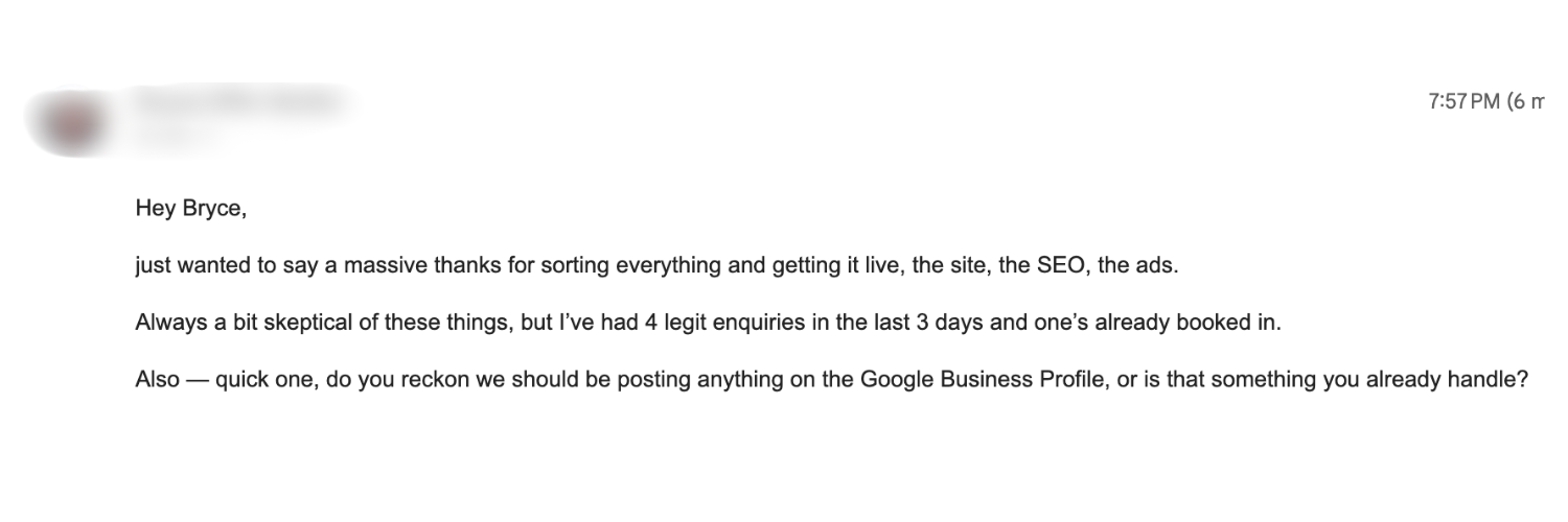 You focus on the work and we bring the clients. I've helped generate over 50,000 leads and $30M+ worth of work for tradies across Australia.